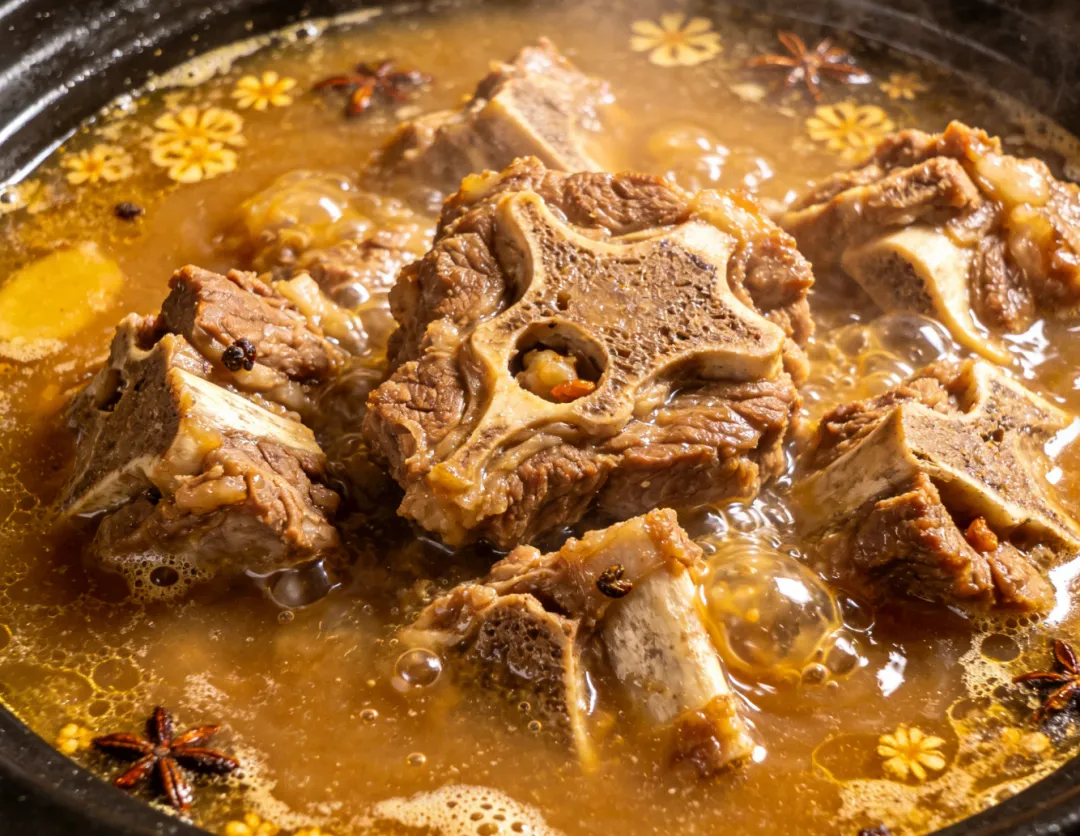 大块猪脊骨经老汤酱炖,肉质酥烂、酱香入骨。吃时直接上手,最后吸食骨髓,充满乐趣,非常适合放松自驾后的疲惫身心。薛府一品酱骨、吴记酱骨等名店值得一试。