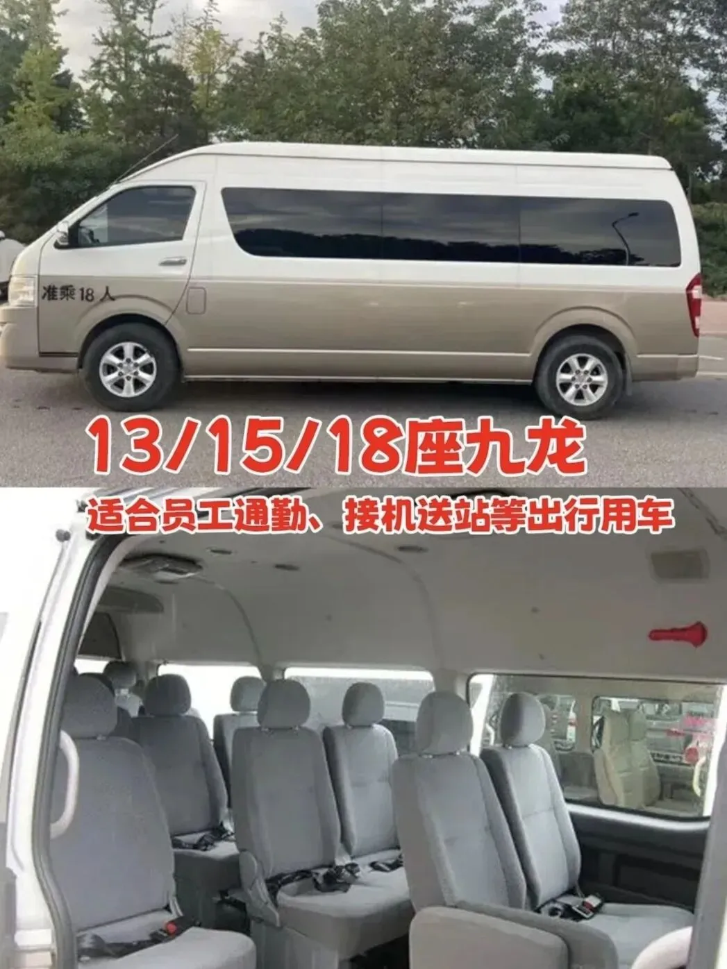 我们有:5座轿车,7-14座商务车,17-23座中巴车,33-55座大巴车等较新款车型,车内环境整洁无异味。