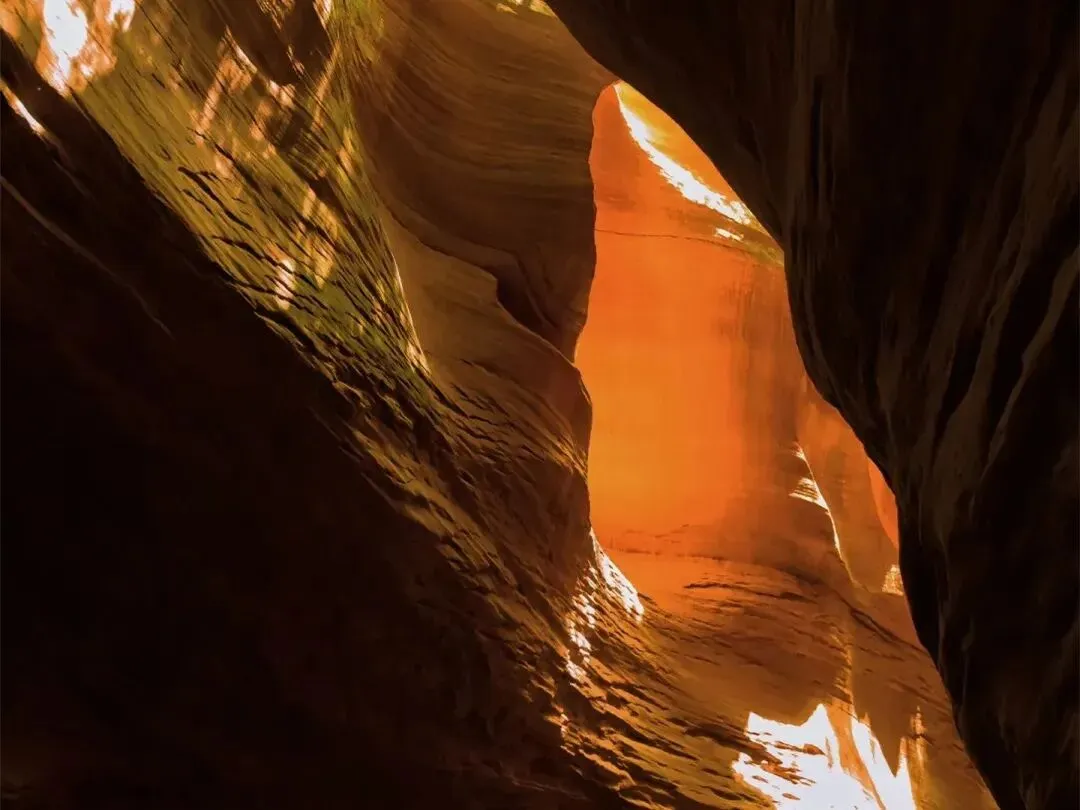 黄土高原地缝奇观,光影岩壁似羚羊谷。 |