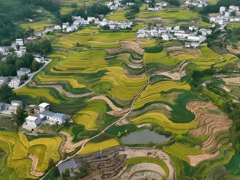 秦巴山间清代梯田,春绿秋黄如诗如画。 |