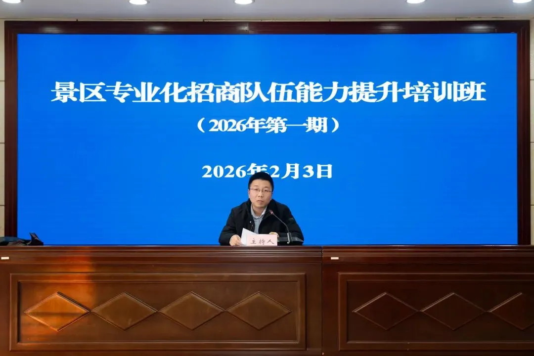 2月3日,景区召开专业化招商队伍能力提升培训班。党工委委员、管委会副主任鞠斐扬主持会议。