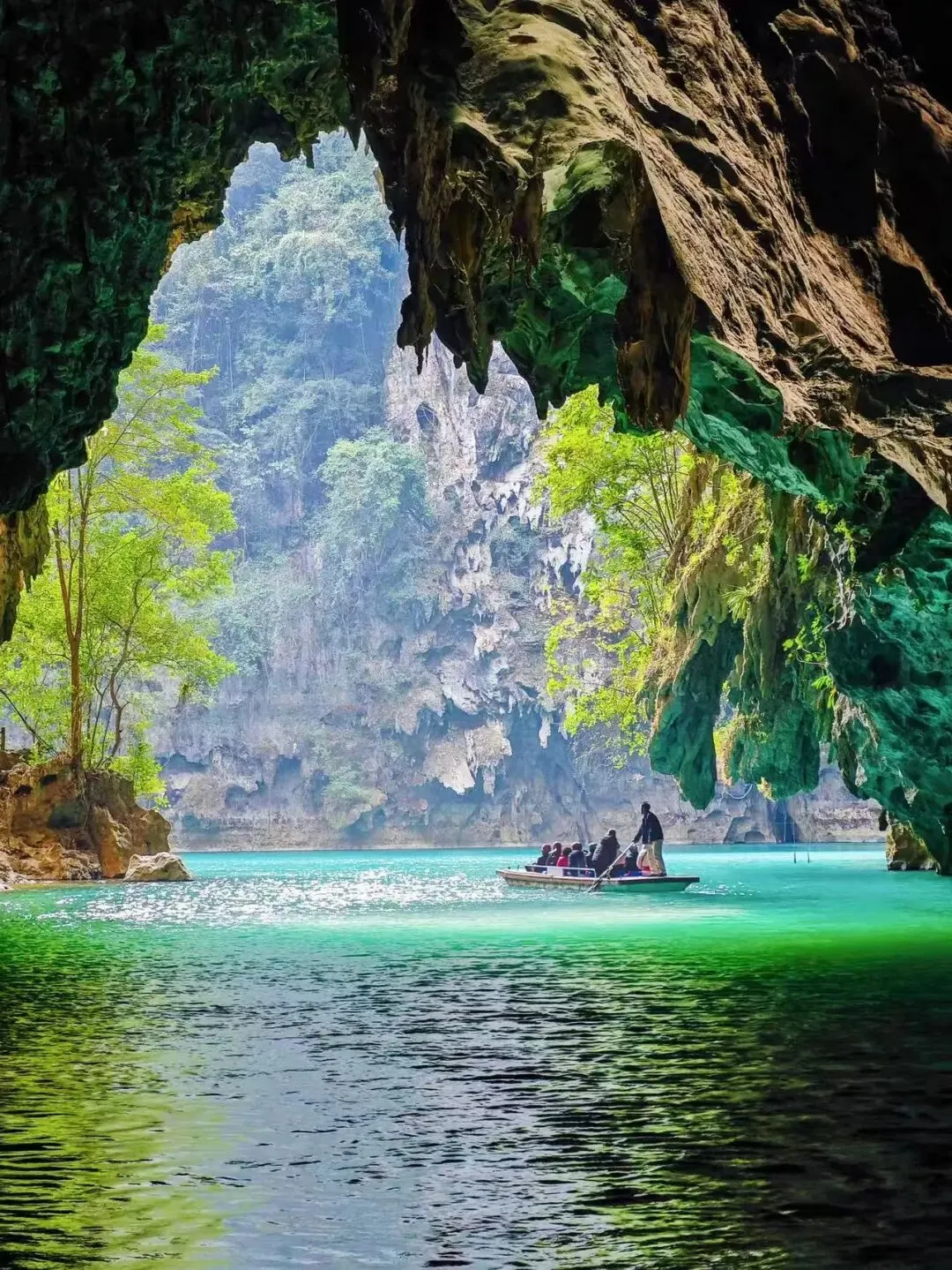 🏮广西·三门海 🧨天窗映翡翠,碧水串龙宫 天窗之下,碧水如翡翠串联起七个喀斯特溶洞,乘竹筏穿行,忽而明河忽而暗河,光影在钟乳石上流淌成银河,这里是地球罕见的“天窗群”,当阳光垂直射入百米深潭,你会看见水底森林在蓝洞中摇曳,这里是中国独有的喀斯特心脏。🎫门票:98元(含游船)✅交通:南宁吴圩机场;河池西站转乘✅地址:广西河池市凤山县袍里乡 ✅住宿:凤山国际大酒店、三门海民宿、坡心河山庄 ✅最佳季节:5-10月