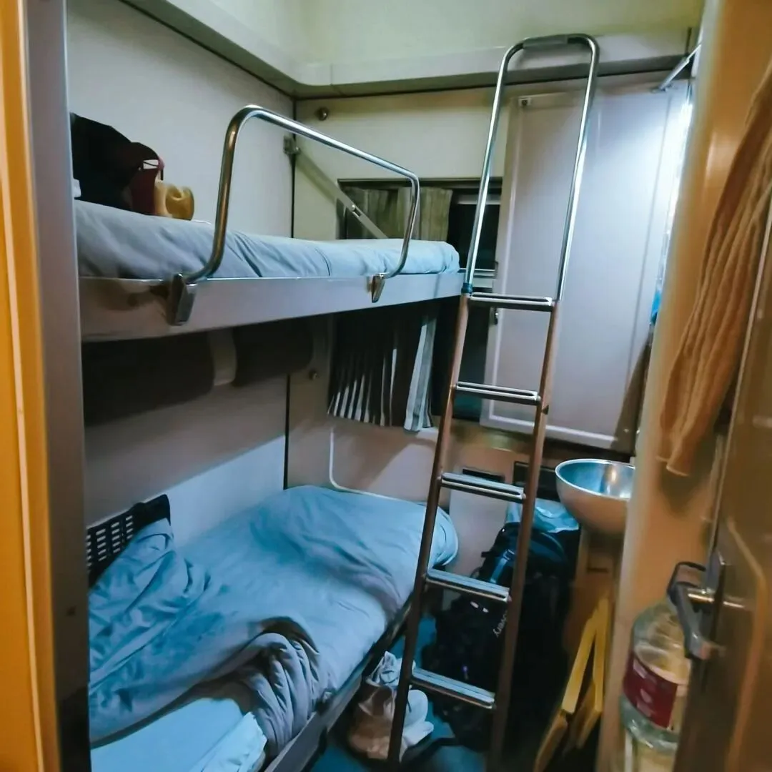 1、火车票可提前通过官方APP“ABELA”购买(需要苹果设备并跨区下载)。选择BED车厢为双人卧铺包厢,价格约每人110美金,含晚餐与早餐,餐食尚可,能吃饱。车厢整洁,被褥干净。