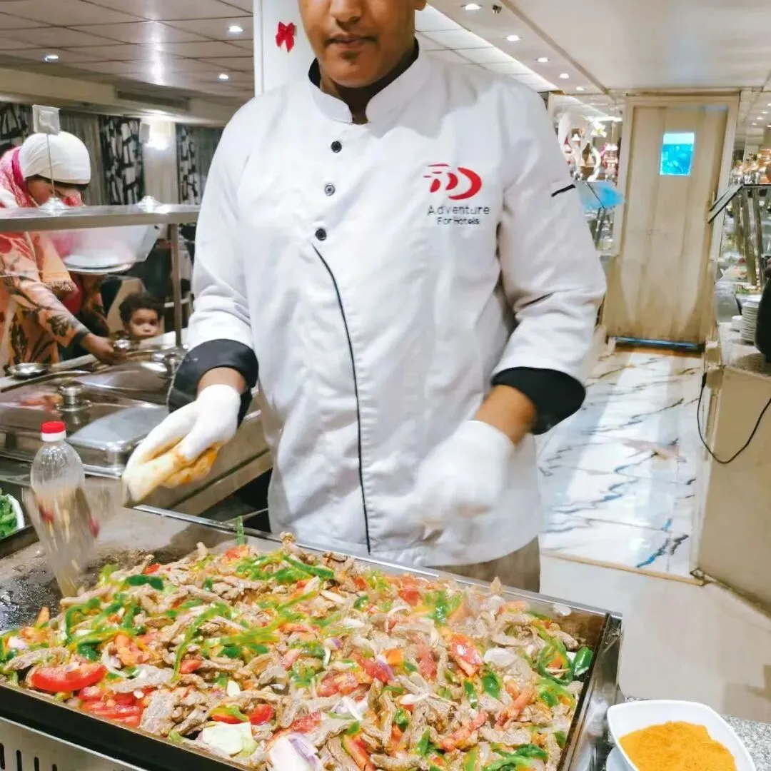 位于city stars mall内的土耳其烤肉店,评分长期高达4.9,除价格稍高外无可挑剔,人均约120人民币。菜品本身价格适中,但因含服务费与税而显得略贵。分量十足,服务周到。沙拉盛于脆饼壳中,由服务员现场敲碎搅拌,仪式感拉满;混合烤肉串(牛、羊、鸡)肉质鲜嫩;炖牛肉软烂入味;热饮选择多样,风味独特。