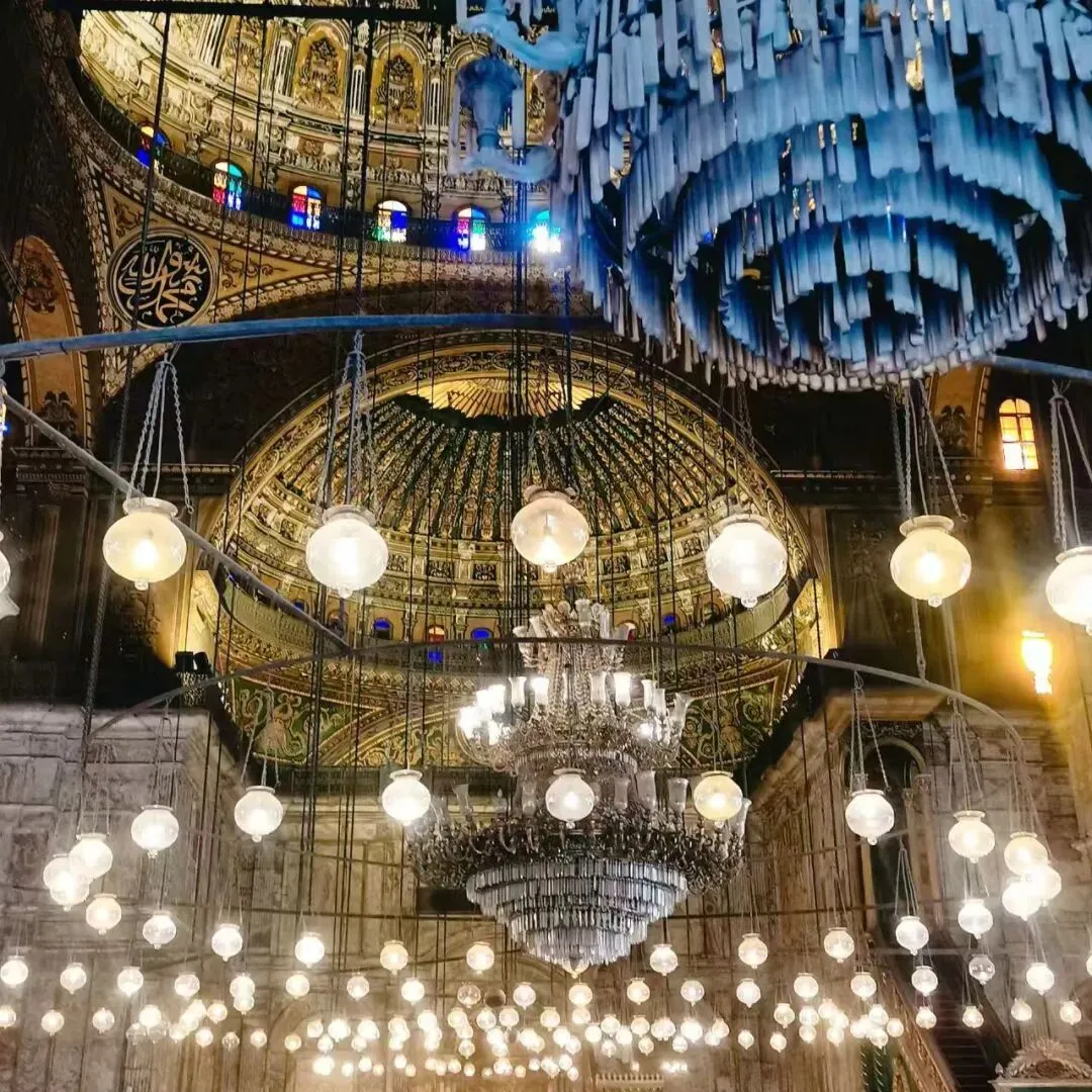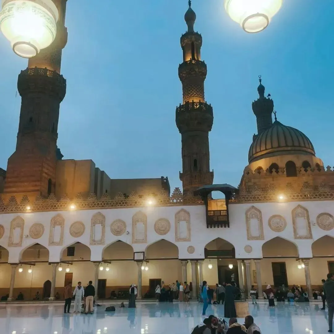 5、爱资哈尔清真寺更为亮丽,白色大理石地面拍照很出片。女士需包头穿袍,寺内可免费借用。