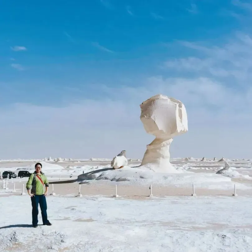 2、清早专车送至巴哈里亚绿洲用午餐。3、换乘四驱越野车进入沙漠,首站前往水晶山,可捡拾类似水晶的方解石。