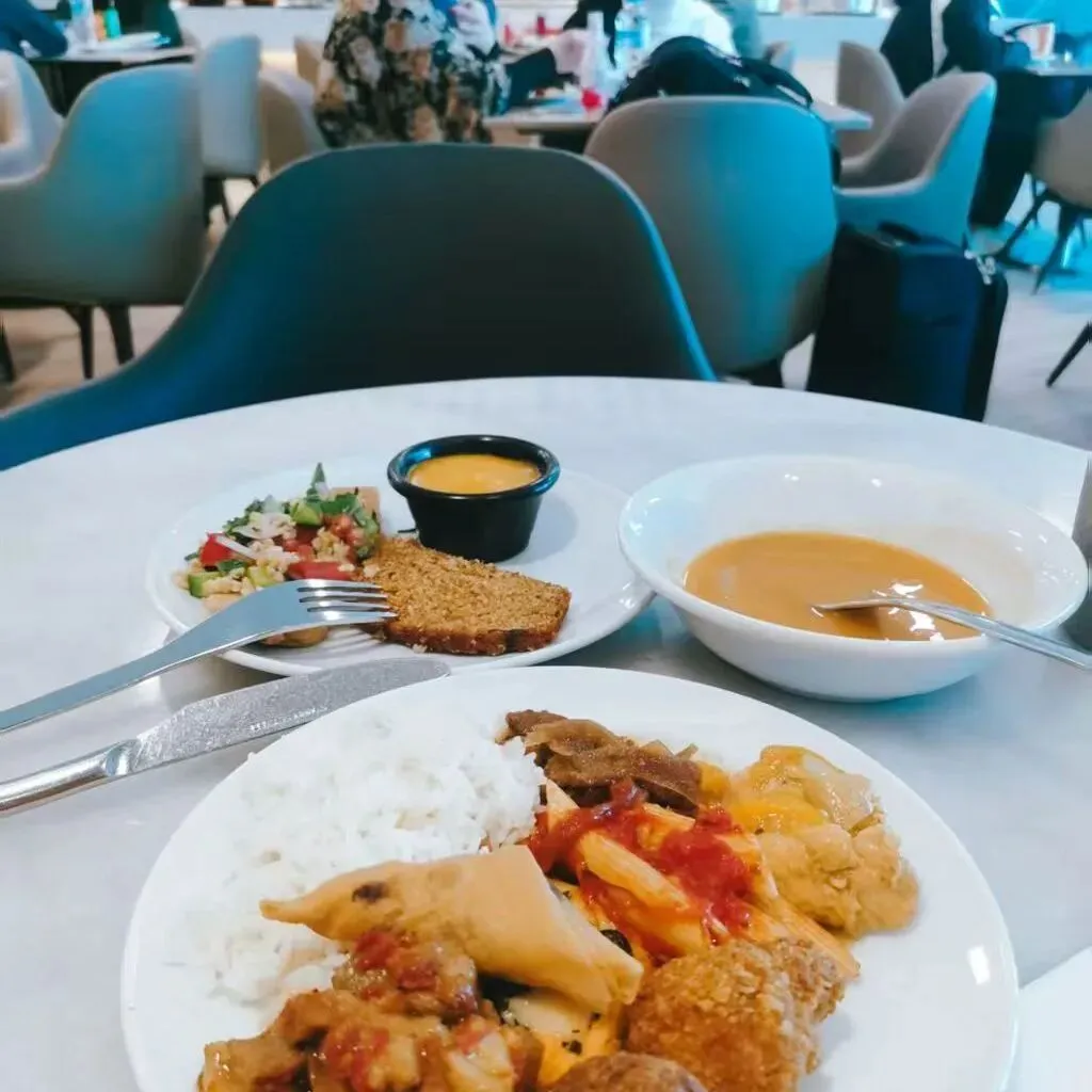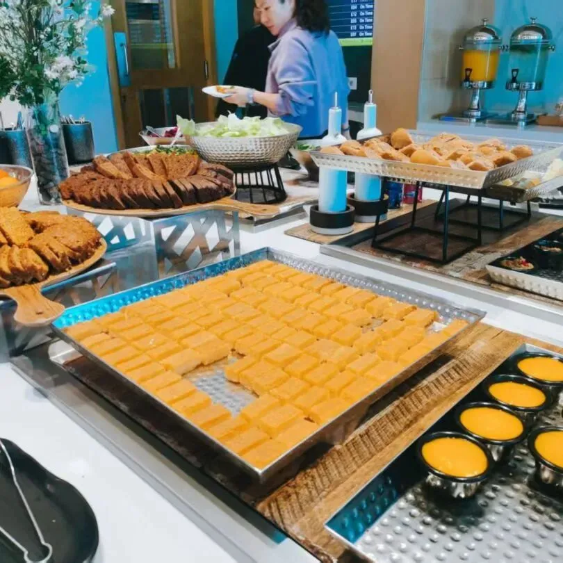 2、携程钻石会员可免费进入Ahlein Lounge贵宾厅,虽设施不算豪华,但舒提供免费自助餐与饮品。其中的芒果米布丁颇为美味,值得品尝。