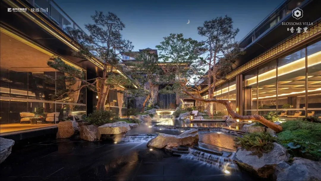 绿城对东方美学的探索,在香雪里项目中抵达新的高度。以约 1.3 低密容积率为画布,LEAP建筑设计总监程华锋以宋代《溪山行旅图》为灵感,勾勒出 “山 - 瀑 - 林 - 溪 ” 四重境界。15幢排屋与16幢叠排依山就势,仿佛从山水间自然生长而出,建筑与自然的边界在此模糊,形成 “行者乐山,智者乐水” 的建筑哲学表达。