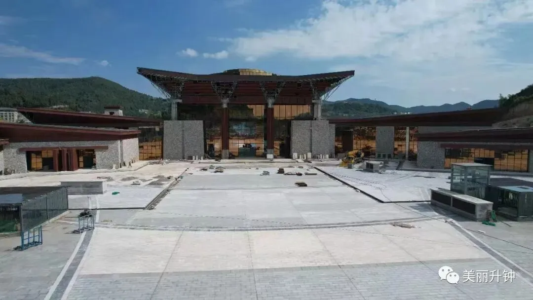 8月8日,记者在升钟湖景区游客中心工地探访。项目目前已具规模,游客中心一道门、二道门、主楼及地下室主体结构已全部施工完成,正在进行总平铺贴、室内外装饰装修以及景区出入口道路、市政管网等方面建设,预计本月底完成地下室负一层停车场标线、主楼及裙楼玻璃幕墙、总平石材铺贴、候车廊以及展陈馆建设。