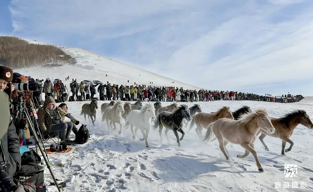 本届冬季马文化摄影节恰逢马年临近,将草原民俗与马文化深度融合,成为最大亮点。不仅尽显草原民族的豪迈奔放,更吸引了来自北京、河北、山西等十余省市的三千余名摄影爱好者与游客齐聚草原牧场。
