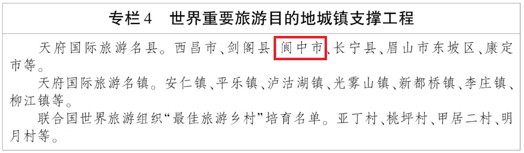 >>聚焦建设世界旅游名城,将以成都建设世界旅游名城为引领,在“一核五区七道”世界重要旅游目的地建设布局中,梯次培育一批国际旅游城市,打造一批具有国际影响力的天府旅游名县、名镇,创建一批世界最佳旅游乡村,形成支撑世界重要旅游目的地的城镇体系。