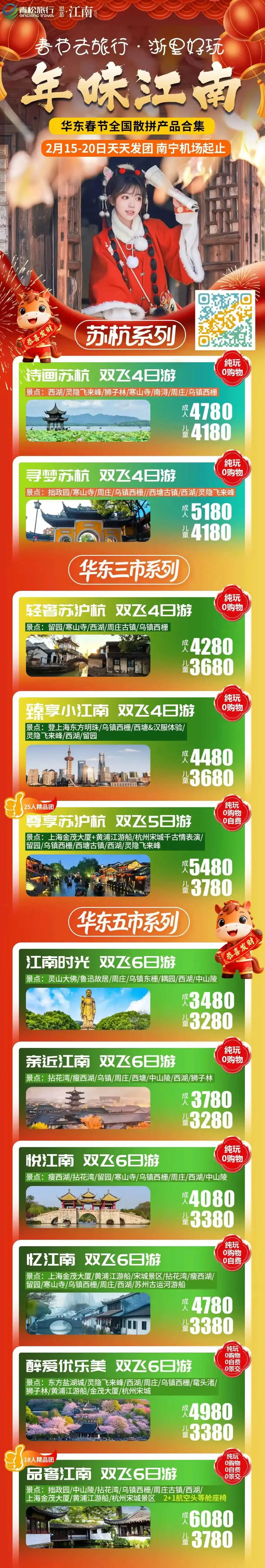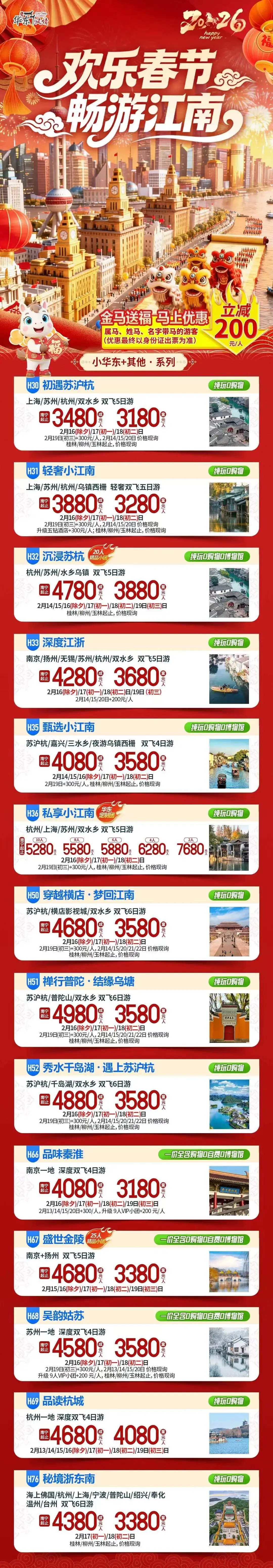【华东】2月 春节&寒假 华东 旅游线路推荐 报名优惠!