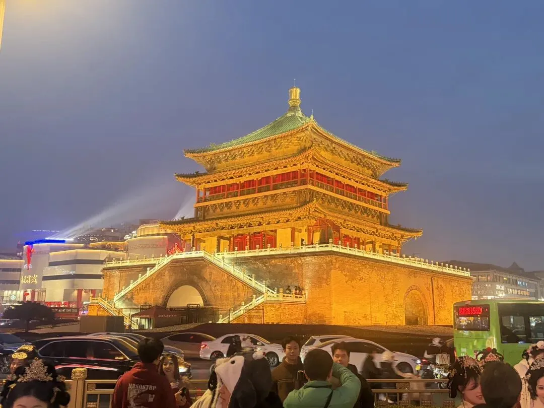 乘着二号线来到钟楼与鼓楼脚下,夜色中灯光为古楼披上璀璨的衣,仿佛时光在此刻温柔流转。