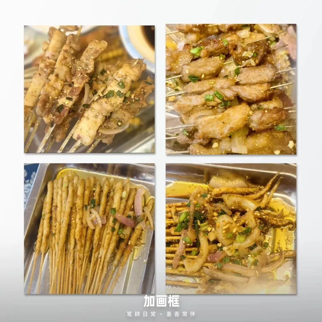 钻了烟火气满满的小巷,有回民街、北广济街、化觉巷和西羊市美食一条街,全部都是小吃,特别多,可惜我们都不是很喜欢,只是停留在逛逛、看看……最终拐进“长安记”吃烤肉——三个人,十个菜😋(果然眼大肚小,剩下一片战场)俩小子感慨:“早上晕碳,晚上晕肉,西安真是让人‘醉’啊!”🍖🤣