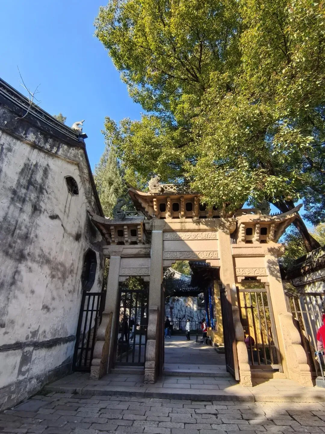 陪着老妈缓步沿牌坊下的石板路往里,此间景致规模不大,却规整有致。青石板铺就的地面被岁月磨得温润发亮,缝隙间草青苔绿,古意浓郁。