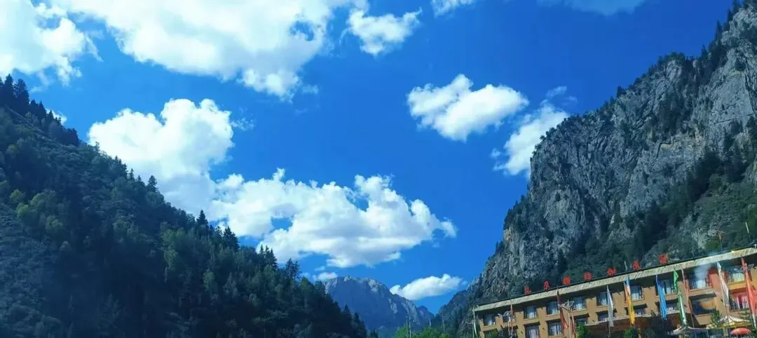 沿栈道下行,溪水潺潺冲转着转经筒,身着藏装的村民面带淳朴笑容,用不太流利的汉语问候往来游客。