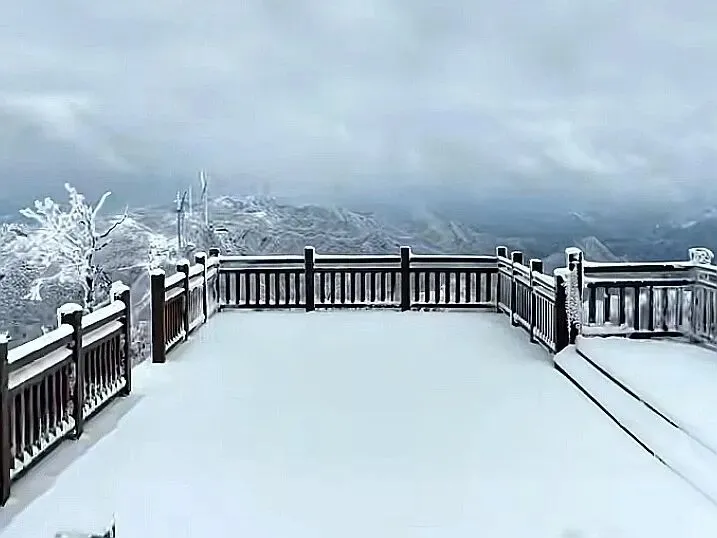 要是想安静点,在森林书屋里头有上万本书,可以边看书边坐在窗边看雪,也是一件很舒服的事情。第二个打卡地方,就是再往前一点走,就是七曜山了,它海拔有1800多米,山上能看到天生桥这些自然景色。