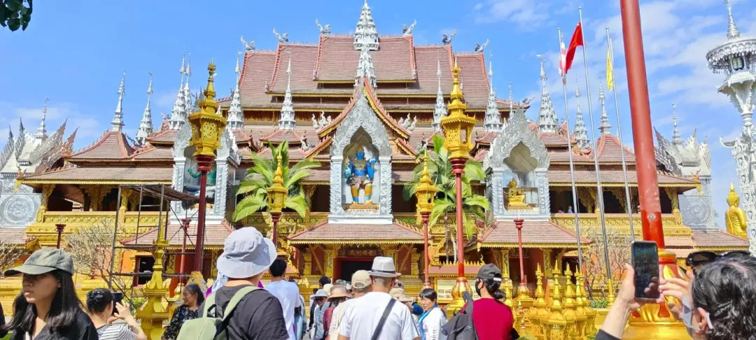 更让我感到“形式主义泛滥”的是,在大金塔下面那些本来应该庄严肃穆的台阶上,在夜市那些挤得水泄不通的摊位前,我竟然撞见了一大批穿着亮片傣族裙(改得乱七八糟)、皮肤白得像涂了腻子、眼神里透着一种“今晚我就是女王”的韩国“在逃公主团”。