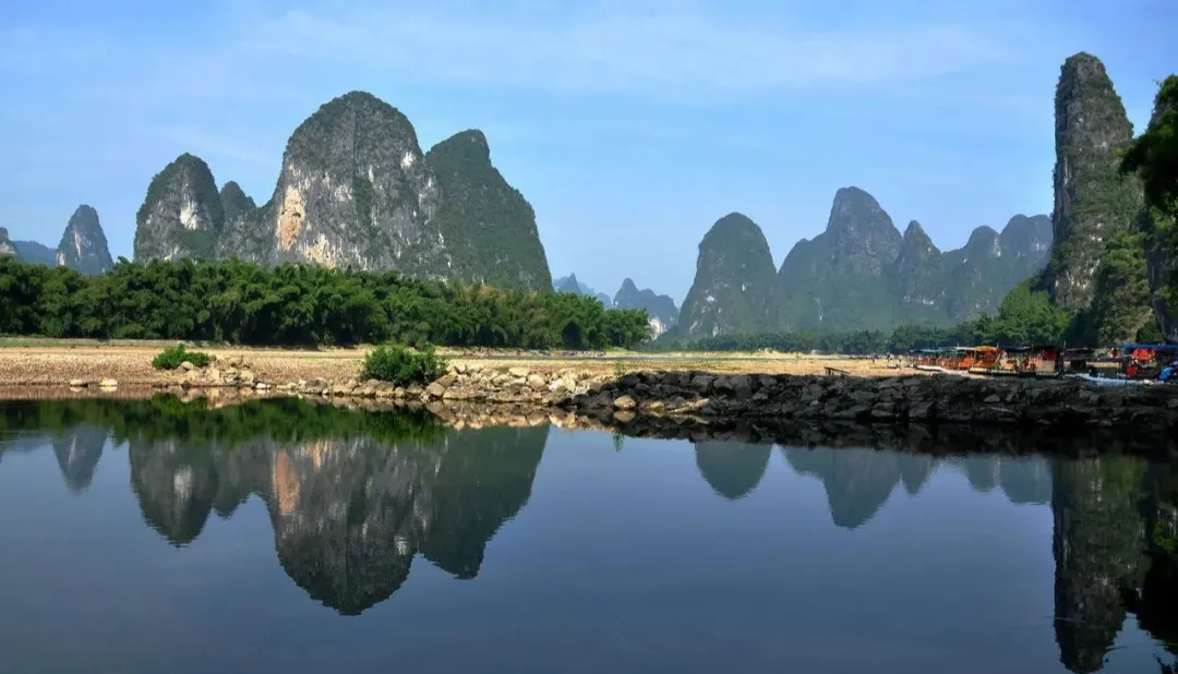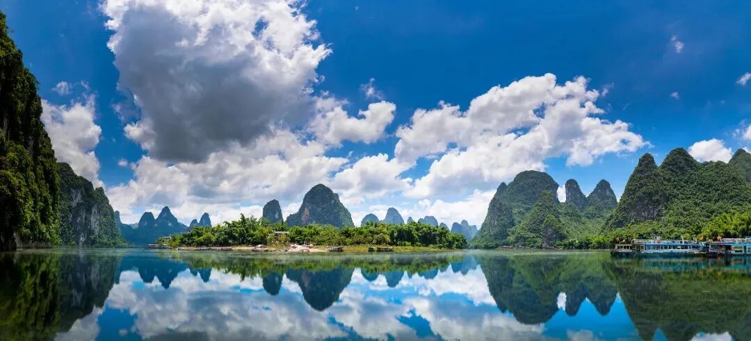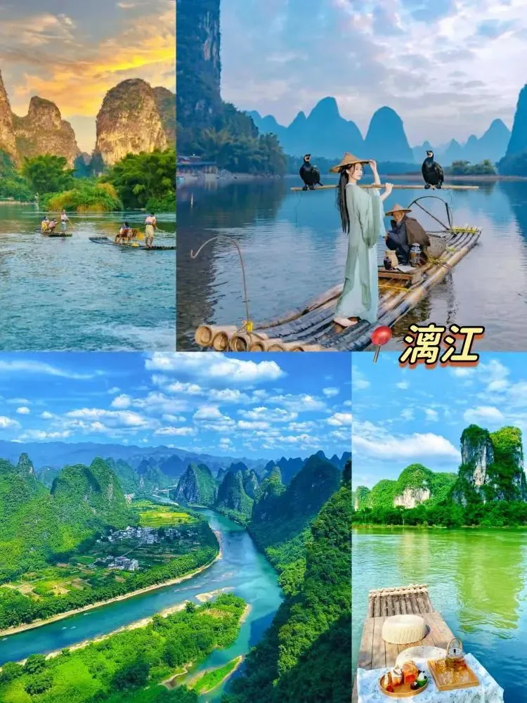 画卷般的水墨世界,漓江是桂林的母亲河,她蜿蜒曲折,如一条绿色的丝带穿梭在群山之间。乘舟江上,两岸青山如黛,倒映在碧波荡漾的江面上,仿佛置身于一幅流动的水墨画卷之中。