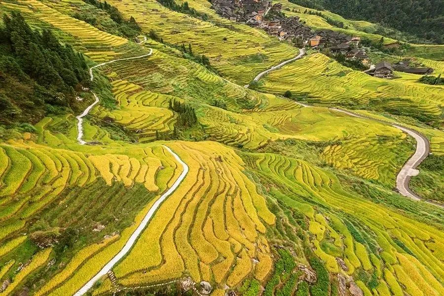 龙脊梯田是桂林地区最具特色的农耕景观之一。这里的梯田层层叠叠,高低错落,宛如一幅幅壮丽的农耕画卷。在春天,梯田里绿油油的秧苗随风摇曳;在秋天,金黄色的稻谷铺满山坡,构成了一幅幅美丽的丰收图景。龙脊梯田被誉为“世界梯田之冠”。