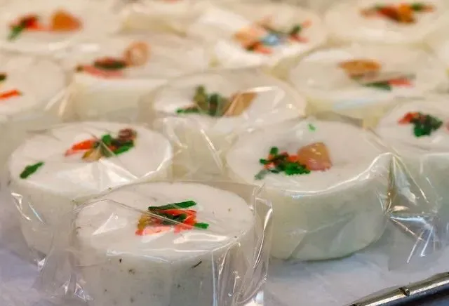 桂林松糕是一款由糯米、黄糖水等原料制成的桂林小吃,味松软爽口,香甜宜人。