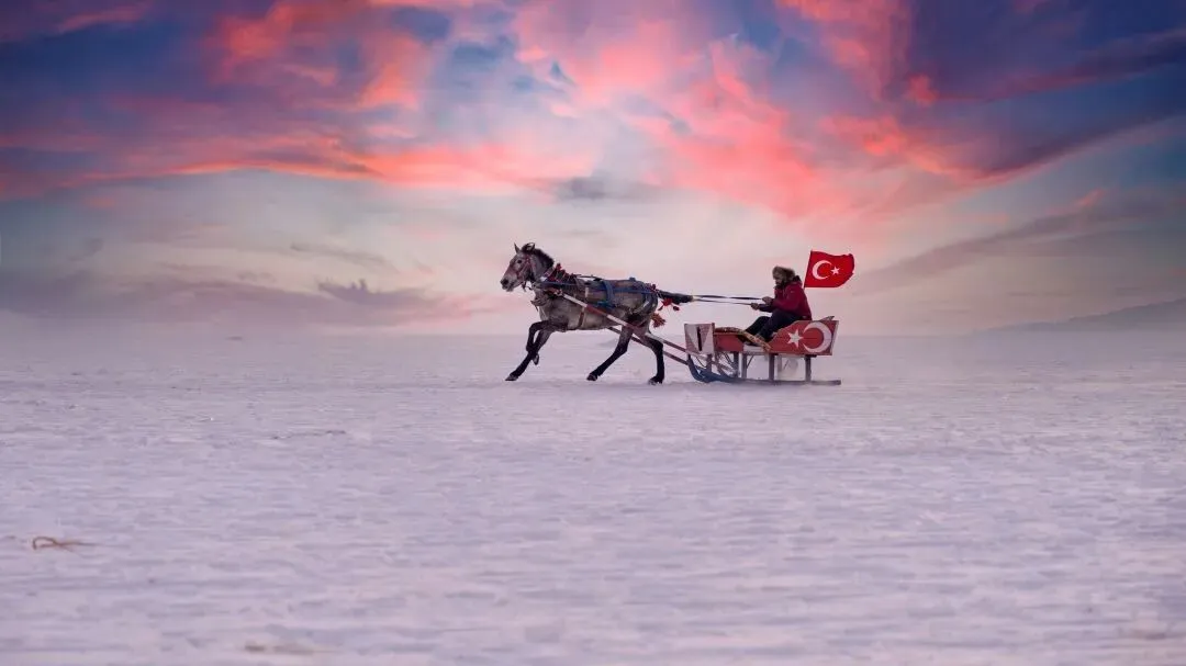 卡尔斯的自然风光同样令人难忘。在Sarıkamış(萨勒卡米什),游客可以在晶莹的雪地上滑雪、乘雪橇,饱览绚烂山景。地处卡尔斯与Ardahan(阿尔达汉)边境的Cildir Lake(哲勒德尔湖),是另一处冬日必打卡的自然奇观。冰封的湖面一望无际,乘坐马拉雪橇滑行其上,常能遇见渔夫破冰捕鲤的生动场景,是这片土地最具代表性的冬日场景之一。