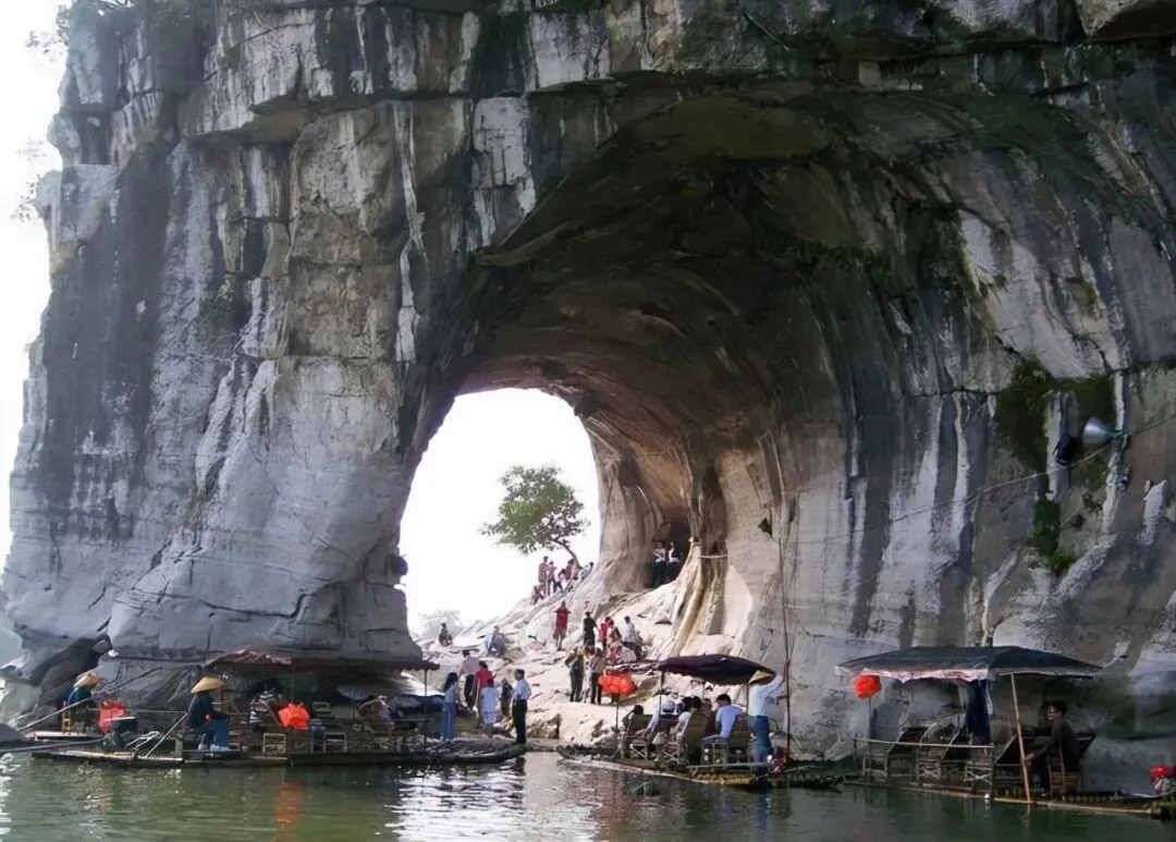 2、水月洞。水月洞紧靠江边,漓水流贯其间,如水中浮月,景致极佳,唐宋以来即为游览胜地。