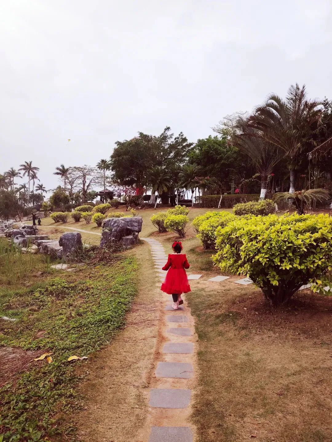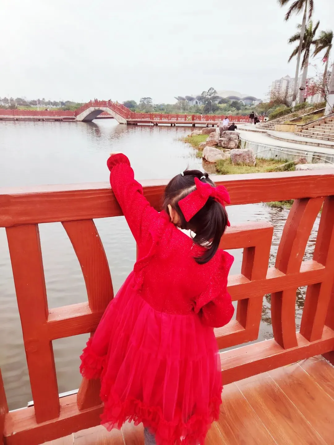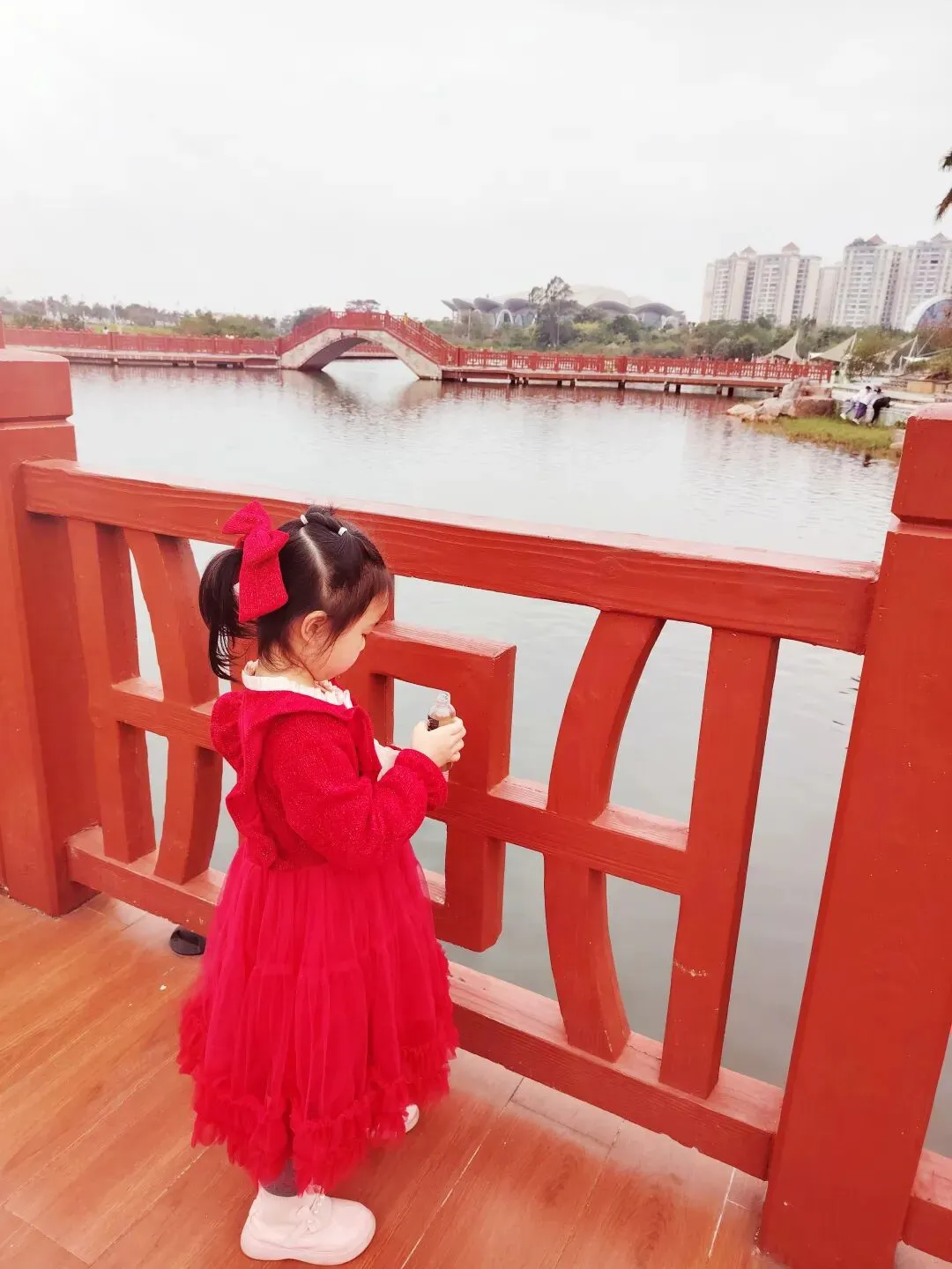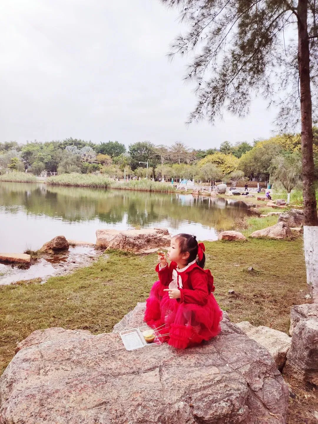 每次带小雨点来,她一定要把整个公园逛遍——喂鱼、拍照、走走停停,这次也不例外。我们下午四点多到公园,一直逛到六点多快天黑了,她才依依不舍地跟我往回走。