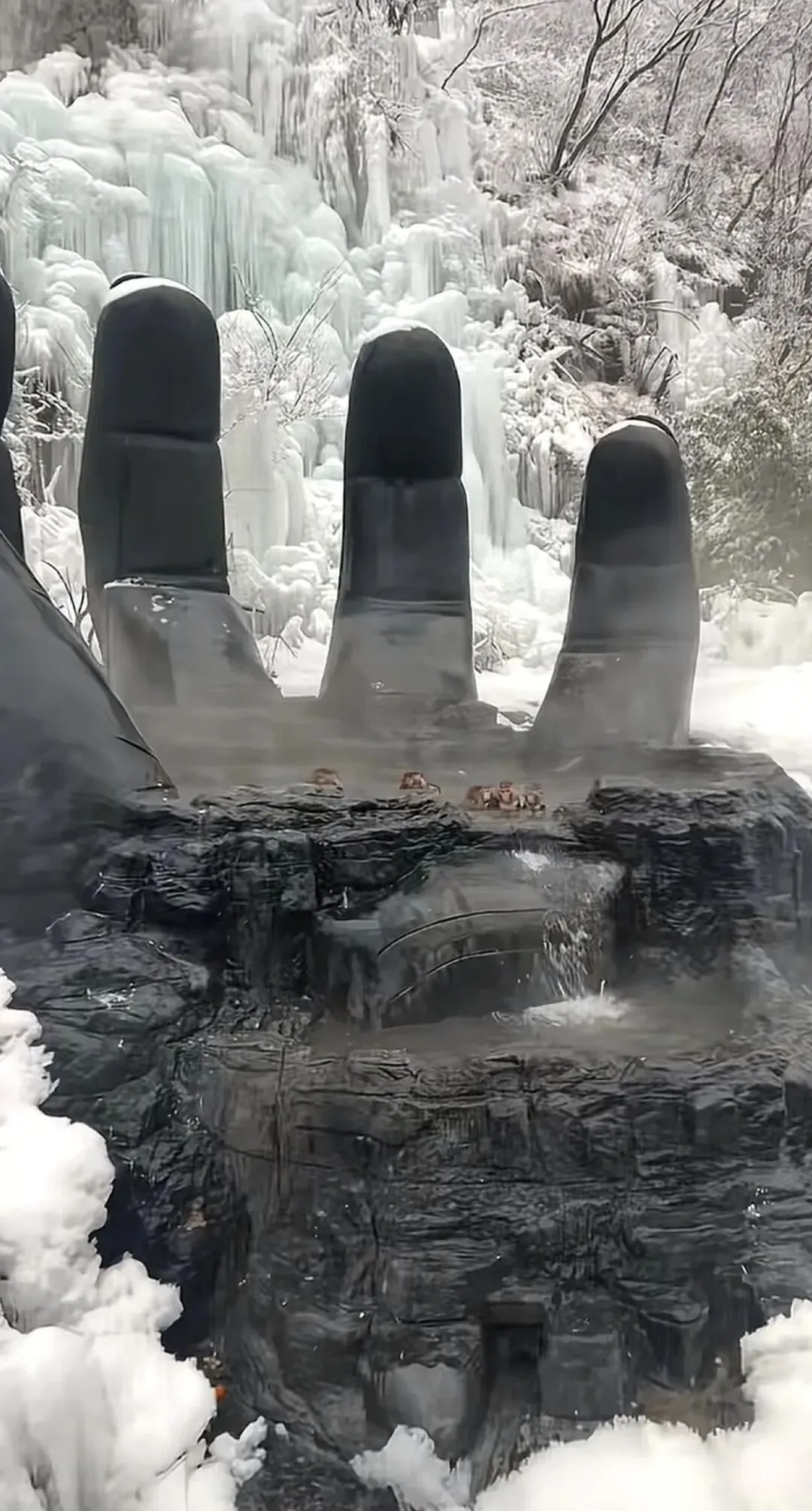 2月2日,记者就此事联系云台山景区,工作人员向记者表示,猴子泡温泉一直都有,具体位置是在泉瀑峡,时间并不固定,有的游客可能正巧会赶上泡温泉,这些野生猕猴泡完澡后,附近也有保温的屋子供它们取暖。相较于往年,今年把温泉造型改成了五指山。
