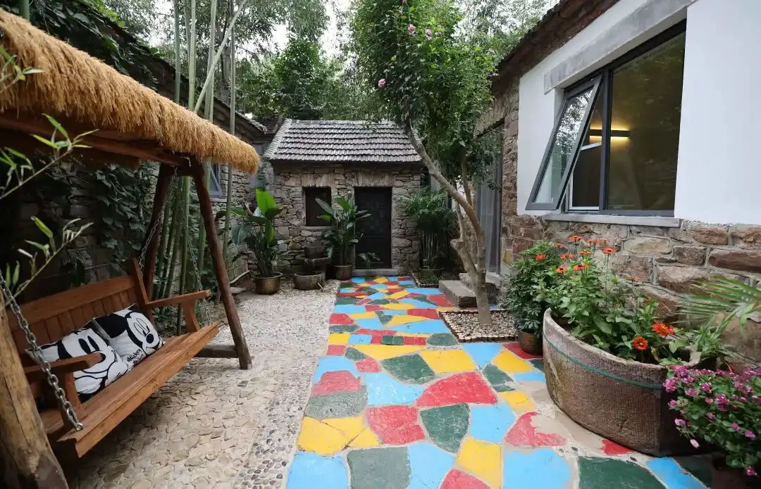 宽敞的院子配备沂蒙地锅、沂蒙老鏊子等传统沂蒙饮食设施;打开地锅,焖熟的土豆、地瓜的香味满足味蕾的享受,用老鏊子做的沂蒙烙煎饼更有乡村农家体验;墙壁上悬挂的怀旧海报与其融为一体,尽显沂蒙乡愁。特别配备的共享菜园,新鲜的无公害时蔬,游客随摘随用,免费食用,让乡村田园采摘乐趣充满内心。