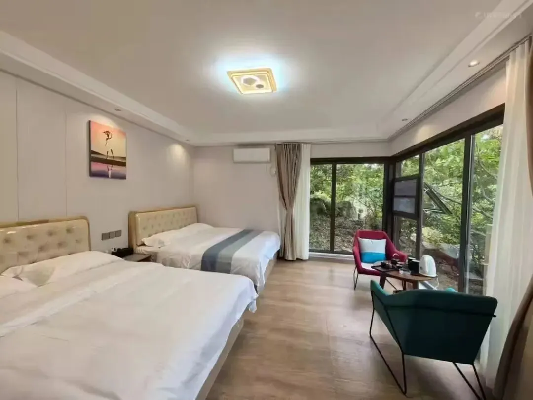 远方的家民宿紧靠风景秀丽、环境优美的玉皇山,满山遍野的栗子林,是由祖辈留下的闲置老宅子改造而成,民宿建筑主体为二层小洋楼,房屋装修简约却不失格调,房型有大床房、亲子房、观景房等,私家小院隐秘感较强,其中一楼采用新中式装修,家具环境温馨,给人一种回家的感觉。