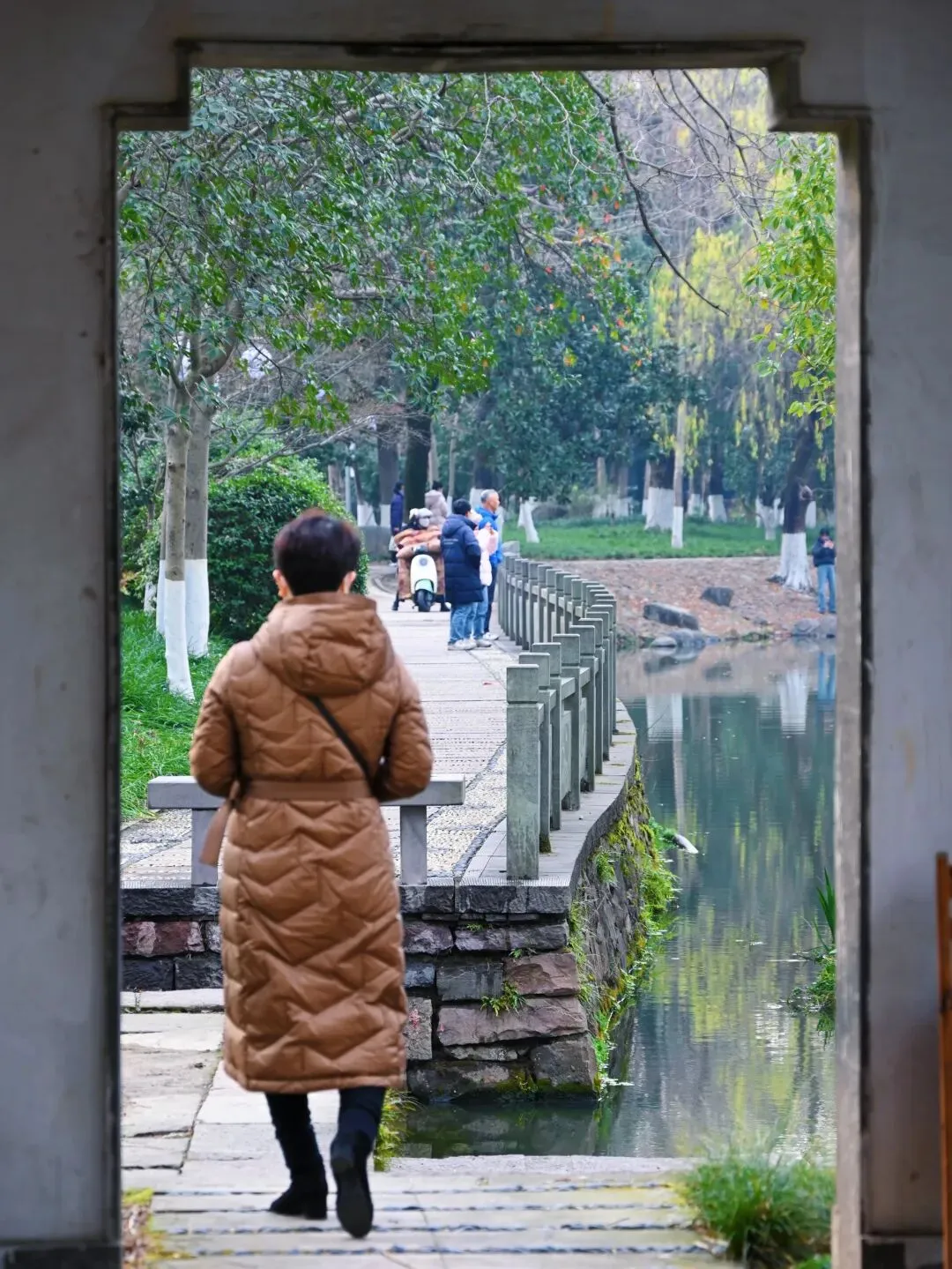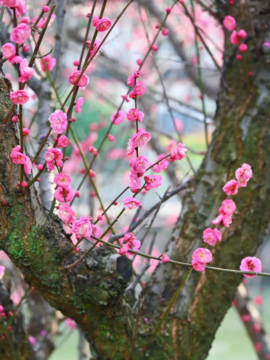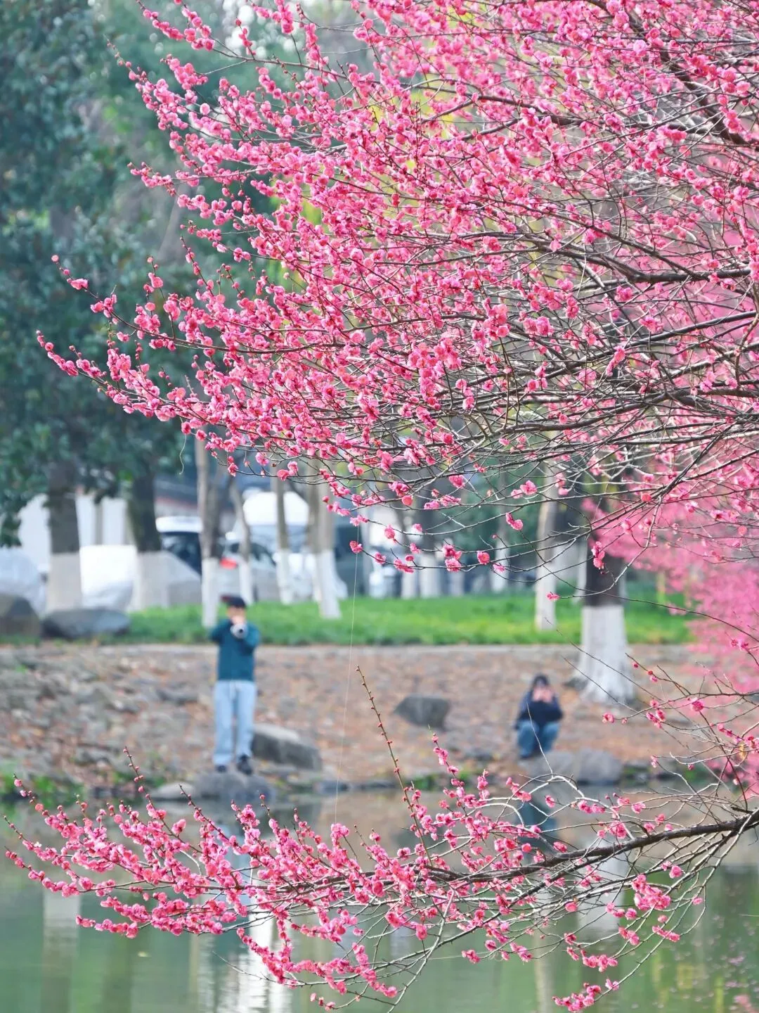 沿着河边慢慢走,从不同位置、不同角度欣赏这片梅花,每一次驻足,都是一幅不同的江南画卷。