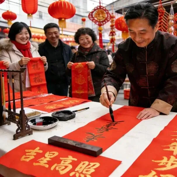 书法家现场写春联、送“福”字