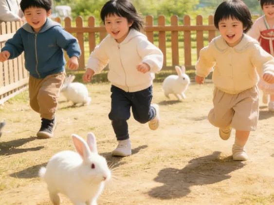 投喂小兔子,与它们合照