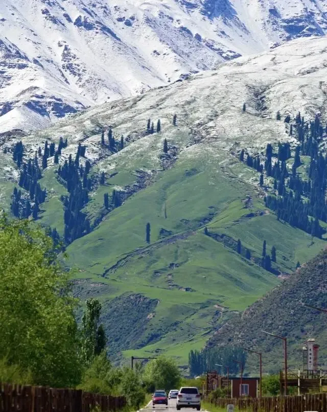 那个地方,地图上明明白白标着天山托木尔景区,但我敢说,99% 的游客都没见过它真正野性的样子—— 大家全都挤在景区门口那一小片平整的观景台拍照,摆几个姿势、拍几张照片,就匆匆上车离开,连景区的冰山一角都没摸到。那个特别的壮观,倘若想欣赏所有的景色更适合徒步游览,风和水蚕食出了独特的景观地貌,有几个地方瞬间仿佛是在火星表面。 有一段路窄得离谱,窄到我得侧着身子、屏住呼吸,小心翼翼才能挤过去,稍微动一下就怕脚下打滑。小路的一边是光秃秃、冷冰冰的粗糙石壁,另一边则是深不见底的悬崖,我压根没敢仔细往下看,光是余光瞥一眼,就觉得头晕目眩。 托木尔的景区变化很快,出发的时候,太阳大得能把人晒化,紫外线刺得眼睛都睁不开,我穿的短袖没一会儿就被汗水浸透,紧紧贴在身上,又闷又黏腻。结果进了峡谷还没俩小时,天突然阴了下来,乌云黑压压地压过来,狂风呼呼作响跟狼嚎似的,温度更是像跳水似的骤降,瞬间就有了深秋的刺骨寒意。我赶紧把包里所有能穿的衣服都翻出来,一层一层裹在身上,还是冷得止不住打哆嗦。艾尔肯大叔在旁边笑着打趣:“我们这儿的天气啊,跟小孩儿脸似的,说变就变。” 我心里直犯嘀咕,这哪是小孩儿脸,分明是川剧变脸,变得又快又突然,一点缓冲的机会都不给。