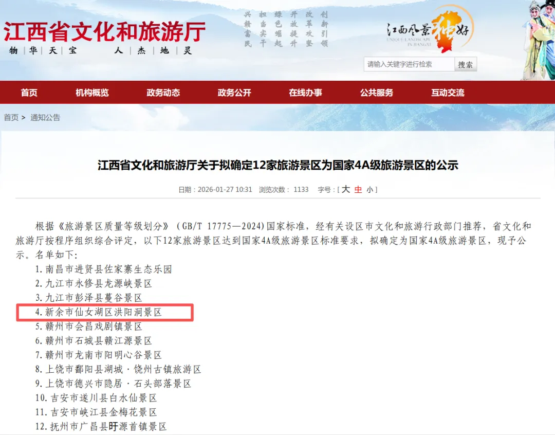 喜报!洪阳洞景区入选国家4A级旅游景区!