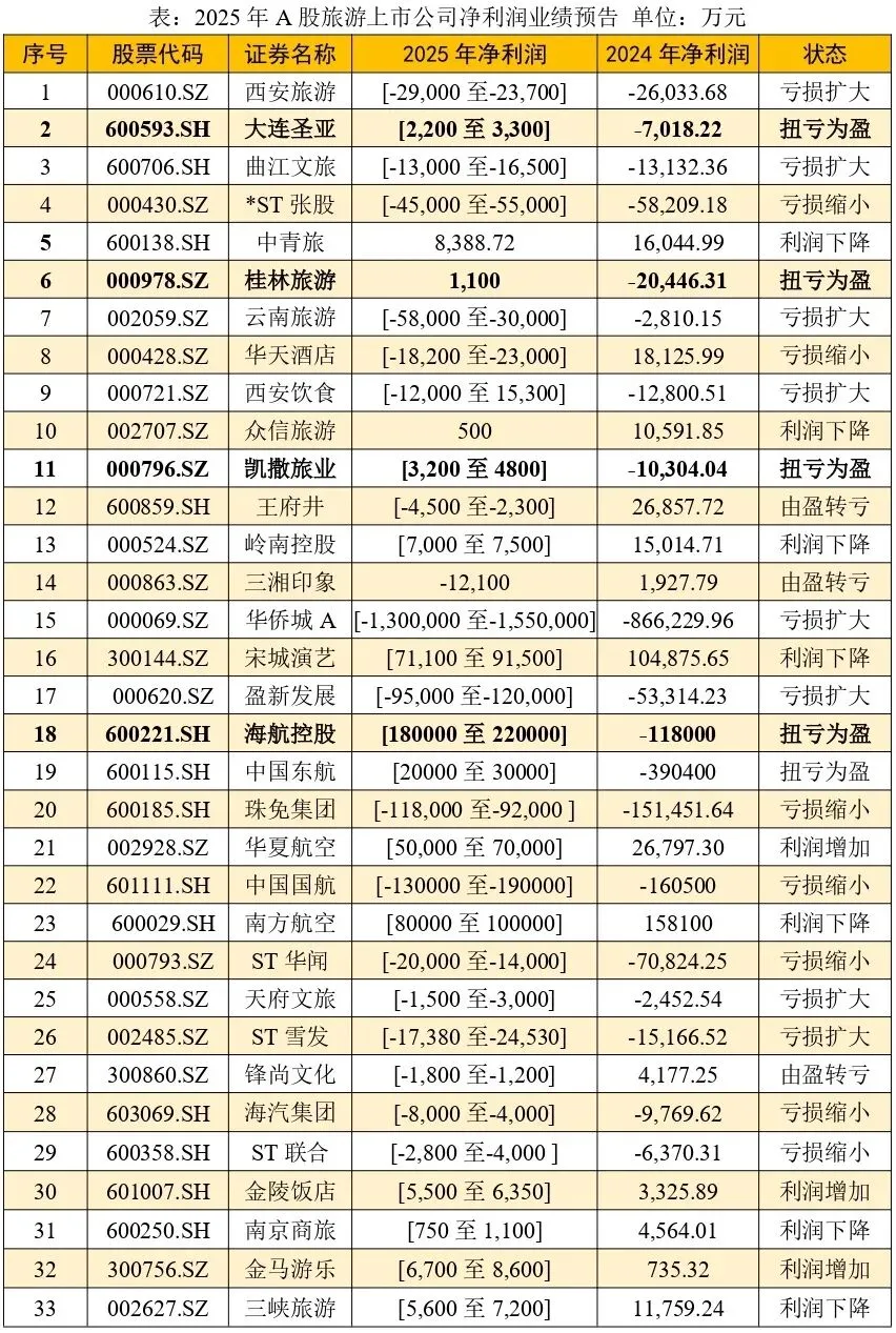 百亿亏损VS数亿盈利:A股旅游公司2025生存报告