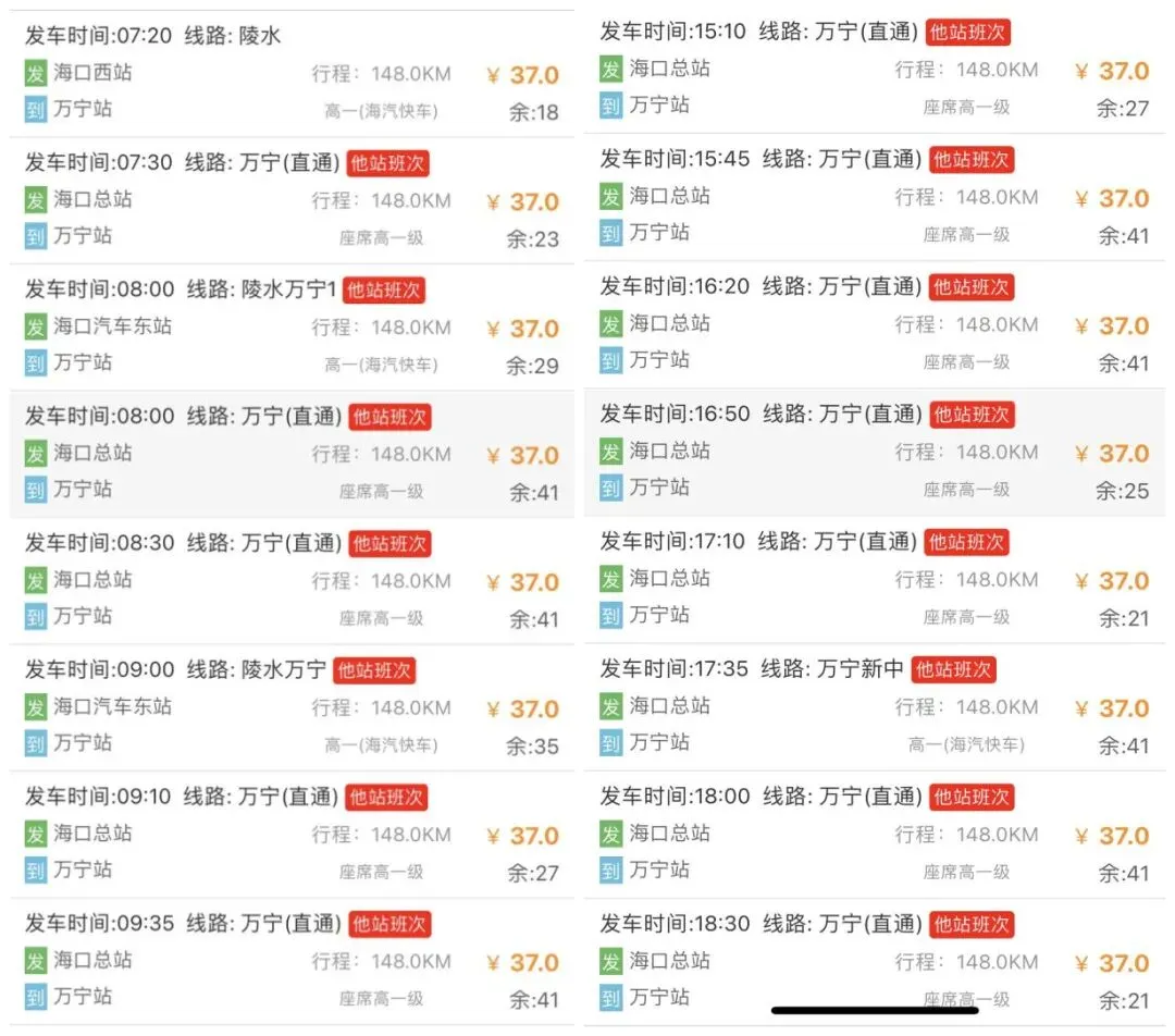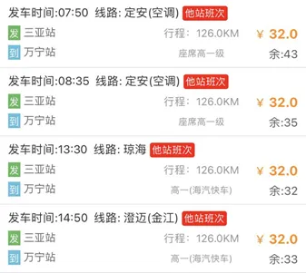 海口东站—万宁站(发车间隔时间20-30分钟)