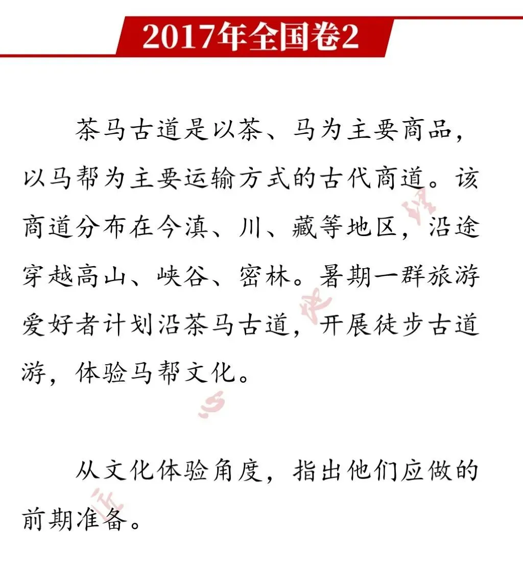 【写在最后】学习对生活有用的地理是基础教育地理课程改革的一条基本理念,本试题以茶马古道为背景,通过材料提供的茶马古道所经过的自然环境,考查考生理论联系实际,具体问题具体分析,学以致用的能力。