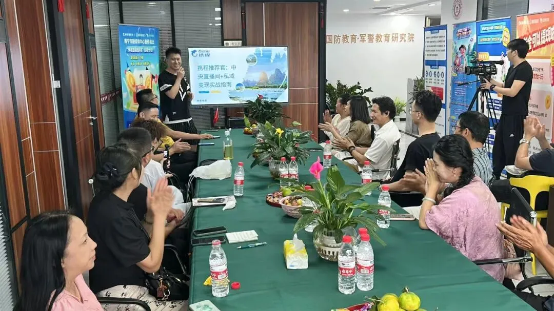 广西携程旅游推荐官项目首席运营官王子尧进行现场介绍 广西携程旅游推荐官招募项目是携程Trip旅游门店与本地旅游企业和媒体合作的示范项目,通过为推荐官们提供业务和AI内容生产培训,提升推荐官们推广和销售的能力水平;项目还为推荐官们打造了旅游视频号直播间,一键分享视频号直播就可能达成销售获取收益,同时,项目开创了相关组织管理体系,使推荐官们能够拥有团队优势和上升通道,在“旅游+创业”的道路上走得更好更远。