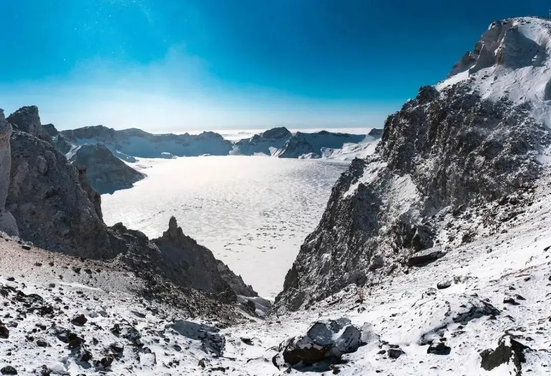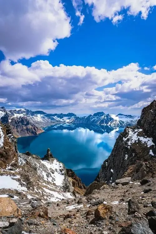 西坡看天池更近,台阶一千多,腿抖也值,天气好时蓝得像打翻了墨水。