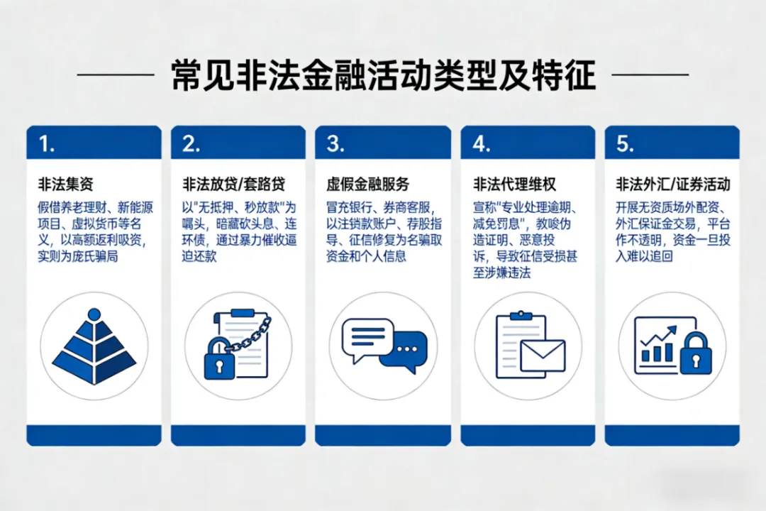 1.非法集资:借着养老理财、新能源项目、虚拟货币的名头,用高额返利吸引投资,本质就是拆东墙补西墙的庞氏骗局。