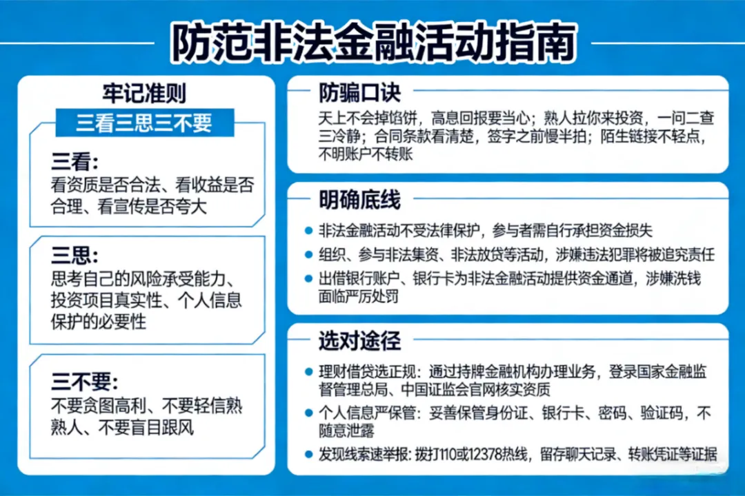3. 发现线索速举报:一旦发现非法金融活动线索,或者遭遇金融诈骗,立刻拨打110报警电话或金融监管投诉热线12378,留存好聊天记录、转账凭证等证据,及时维护自身合法权益。