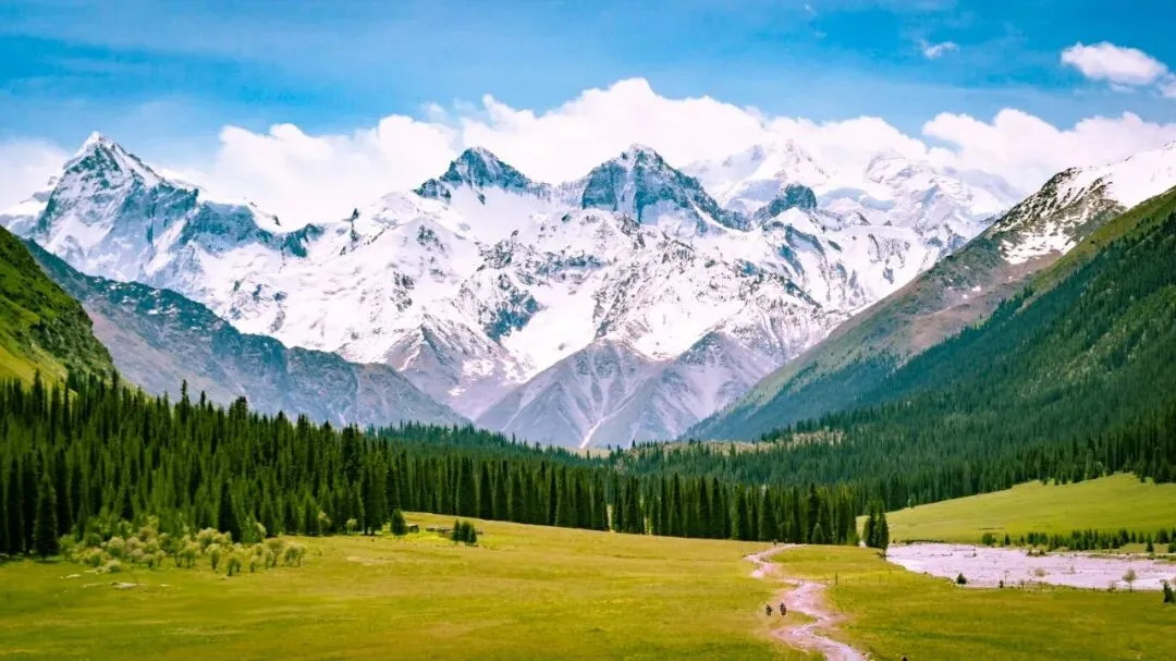 灵武水洞沟 皑皑雪山,大漠孤烟, 云杉挺拔,草场葱翠, 天上人间,万古倏忽。 新疆犹如一幅浓墨重彩的油画, 春夏秋冬,色彩各异,绚烂至极。