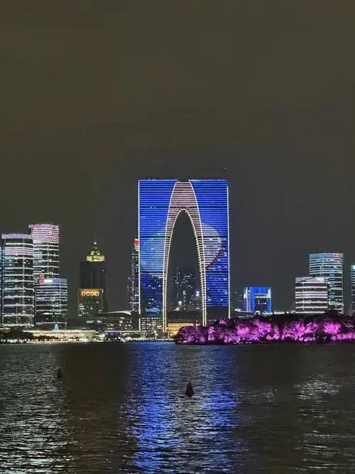 晚上去金鸡湖边散步,远处灯像一串糖葫芦,脚不知不觉就不累了。