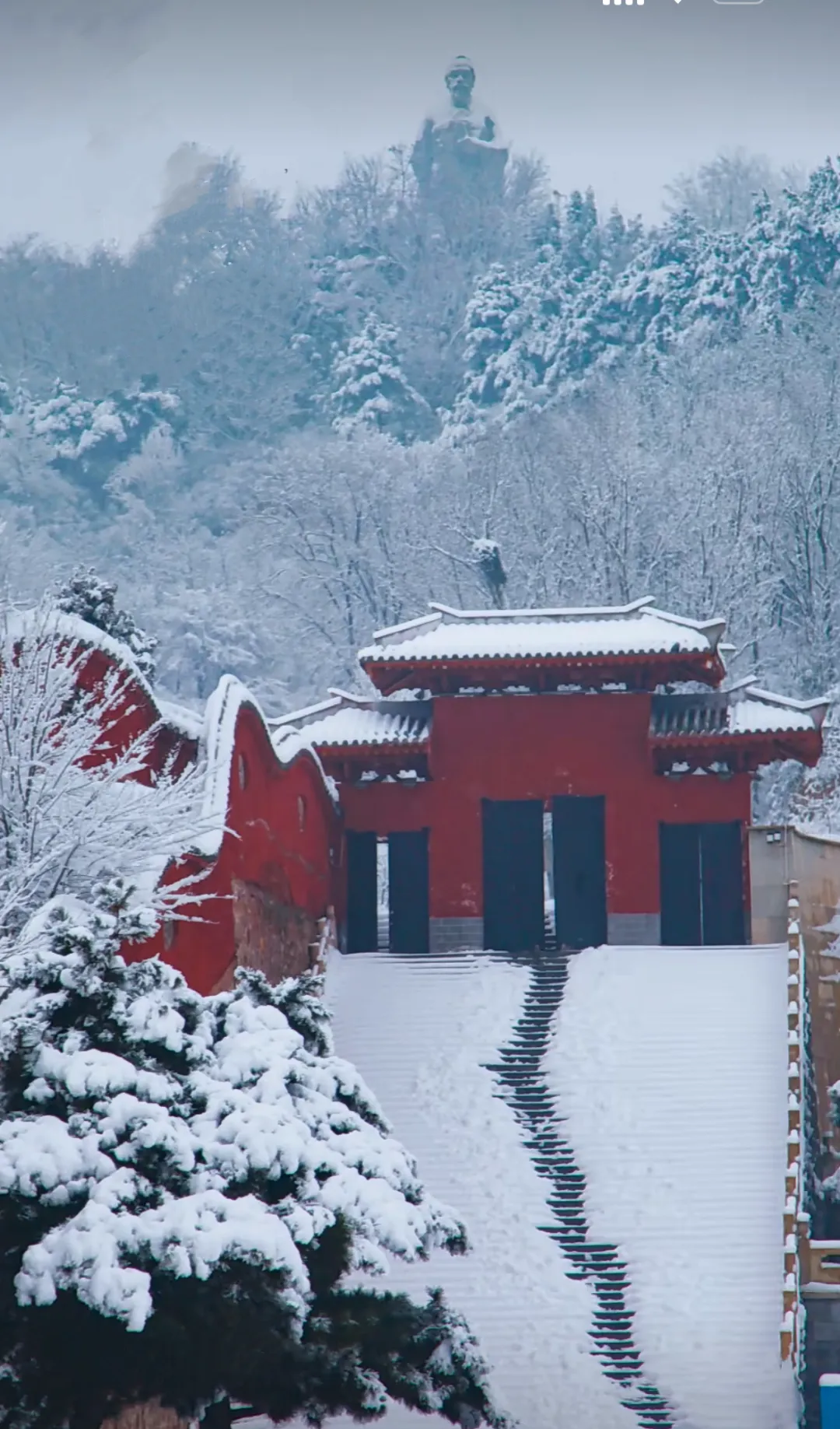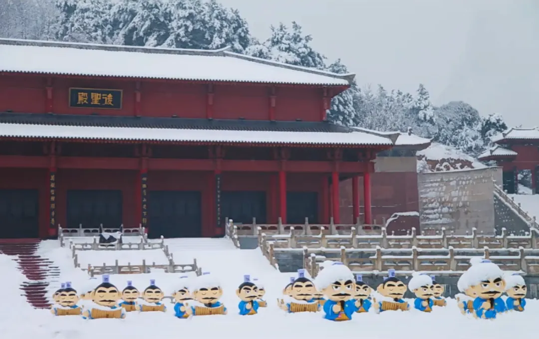 立春的雪,是冬的深情告白,也是春的温柔序曲。漫步在园区,银装素裹的树枝与红墙黛瓦的后圣殿相映成趣,仿佛一幅流动的水墨画。