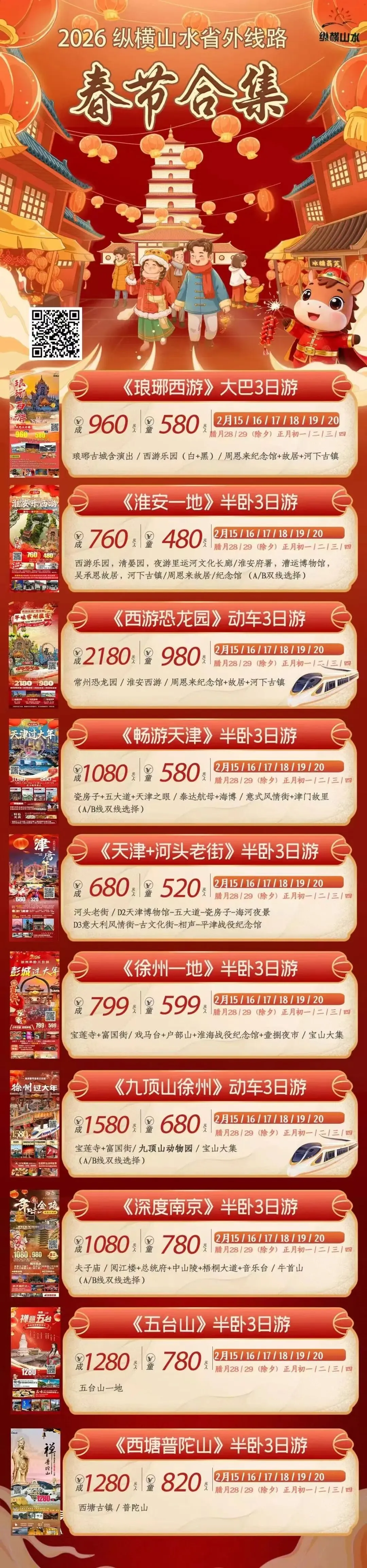 交运旅行社·春节跨年班旅游线路~报名电话2098988
