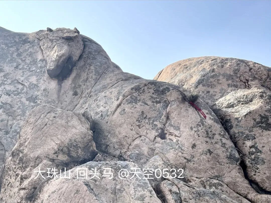 这处象形石在上一个马年就小热过,只是那时候还没有现在短视频这么强的传播扩散效应,而今年各大官媒的短视频也在推介它。 大珠山的 回头马