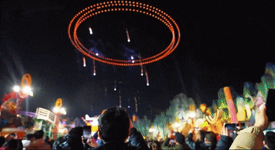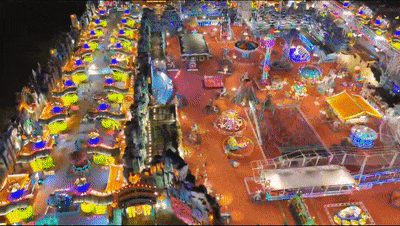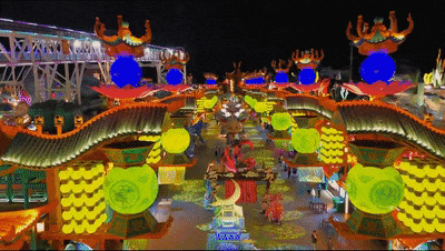 夜晚千盏国潮彩灯点亮夜空,
