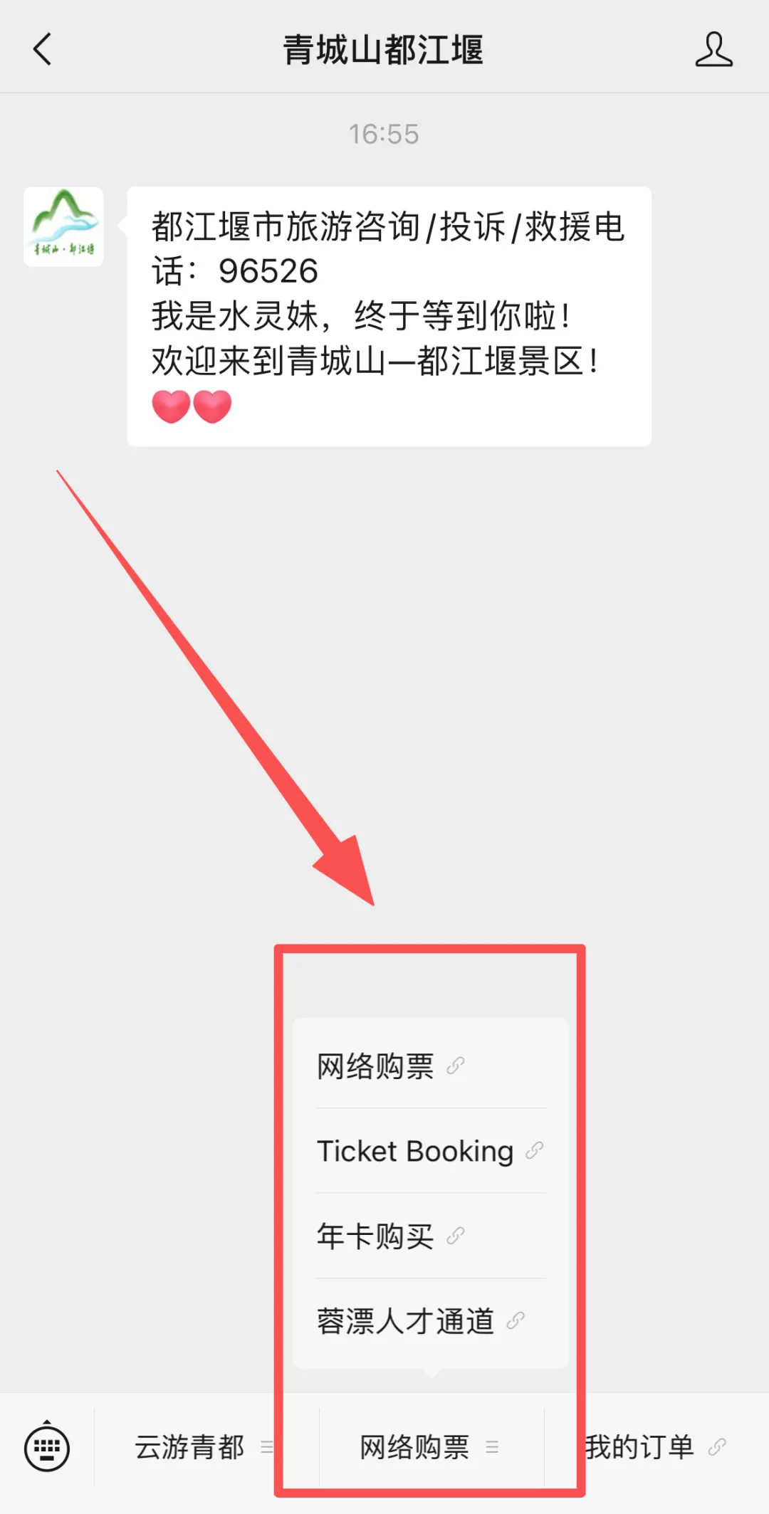 进入“青城山都江堰”或“悦游都江堰”公众号